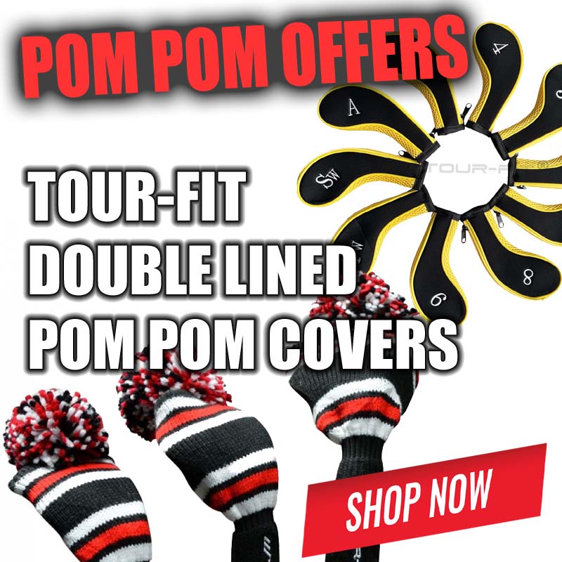 Tour Fit Pom Pom headcovers and irons and woods covers