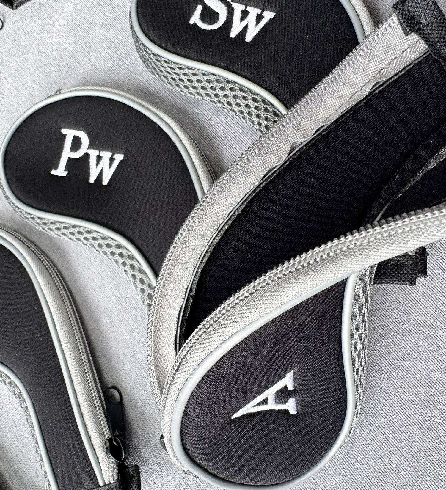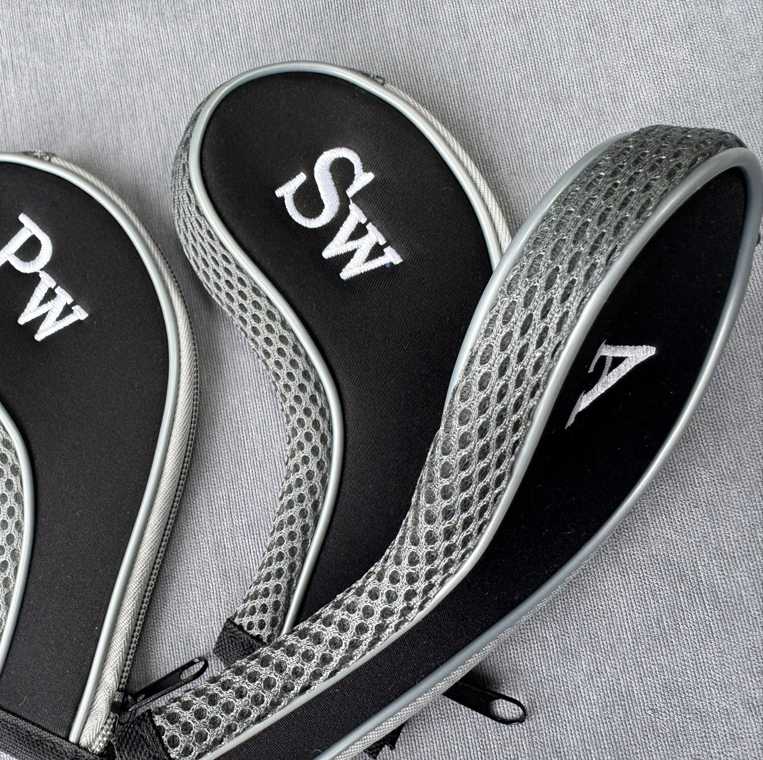 Tour Fit Golf Iron Headcovers Golf Club Iron Wedge Head Protector with Zip and Embroidered Numbers