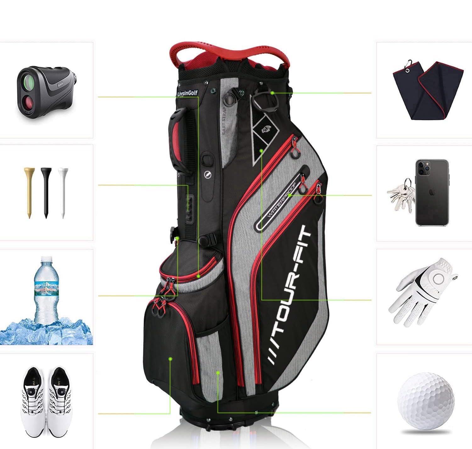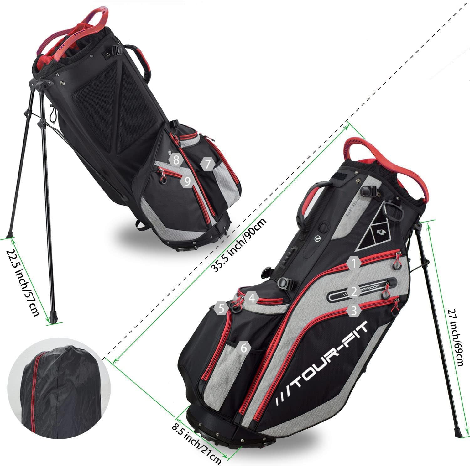 Tour-Fit Golf Stand Bag 14 Way Top Full Length Divider-Black/Gray/Red