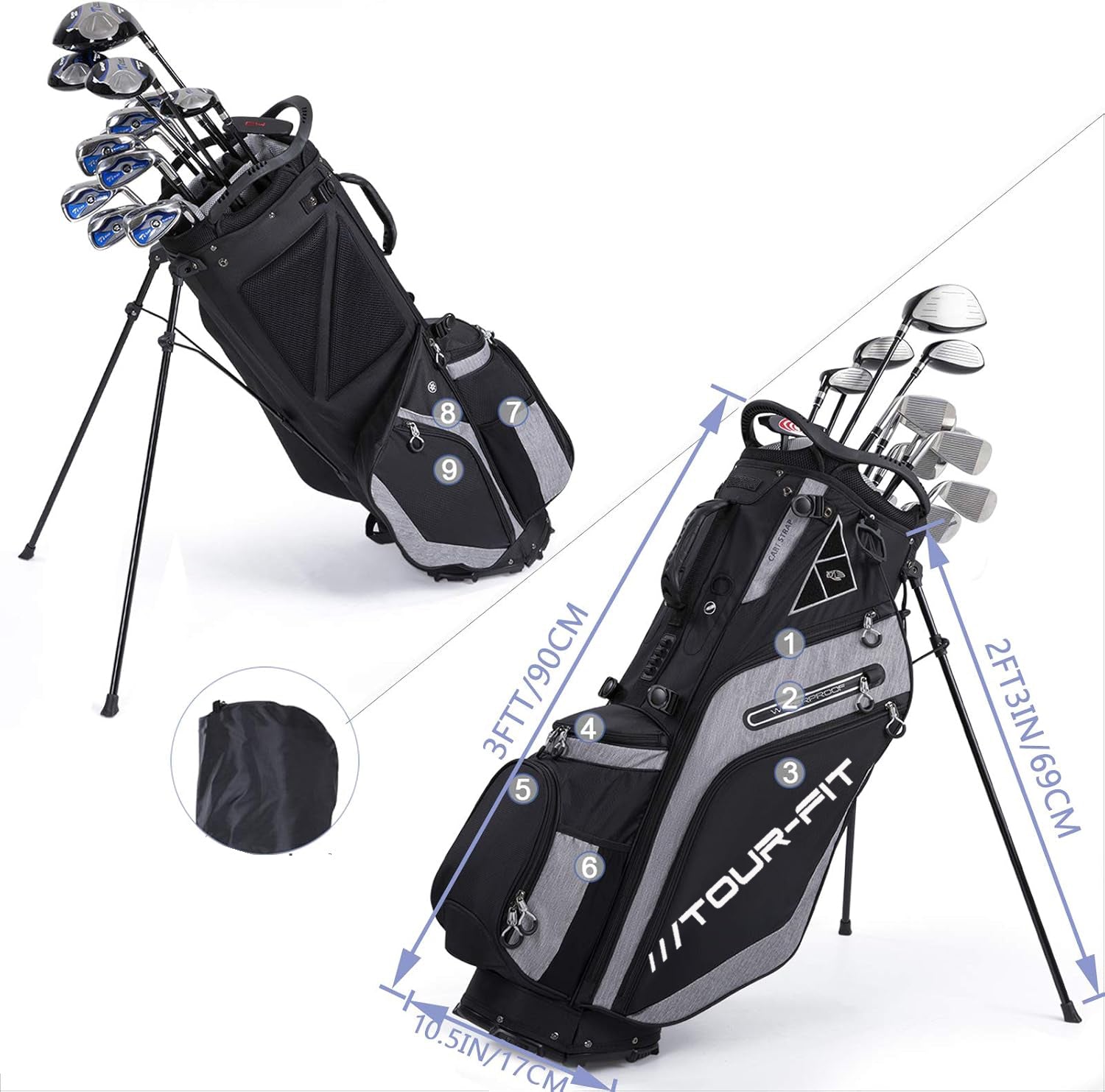 The Tour-Fit Golf Stand Bag is the ideal choice if you want a lightweight, reliable bag with ample storage, all-weather protection, and maximum comfort on the move.